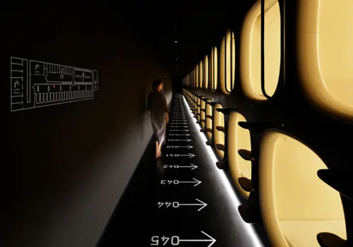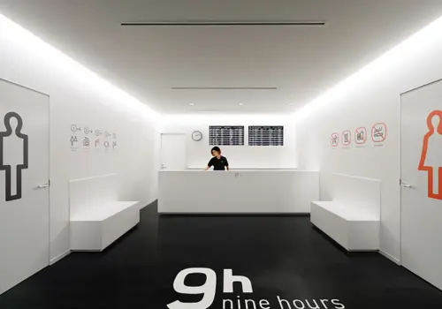 Located in the basement of the parking building connected to Terminal 2, 9h nine hours is a capsule hotel designed specifically for travelers.